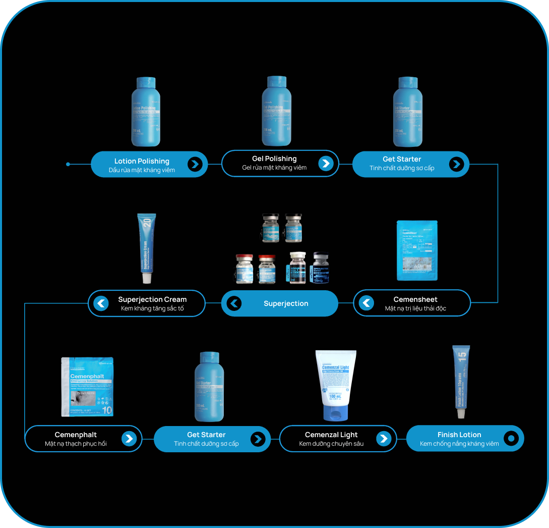 ![]() | CON06 | CemenSheet – Mặt nạ trị liệu thải độc | Ban đêm (1 lần/tuần) | Đắp các phần mặt nạ lên theo hướng dẫn. Đắp khít và ôm sát toàn mặt, sau 10–20 phút lột ra và rửa sạch với nước ấm. |