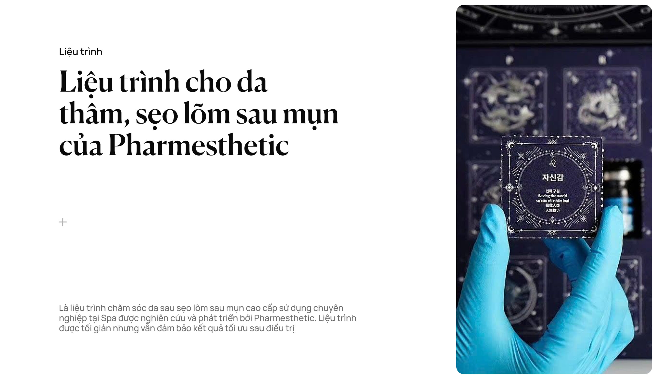 Là liệu trình chăm sóc da sau sẹo lõm sau mụn cao cấp sử dụng chuyên nghiệp tại Spa được nghiên cứu và phát triển bởi Pharmesthetic.