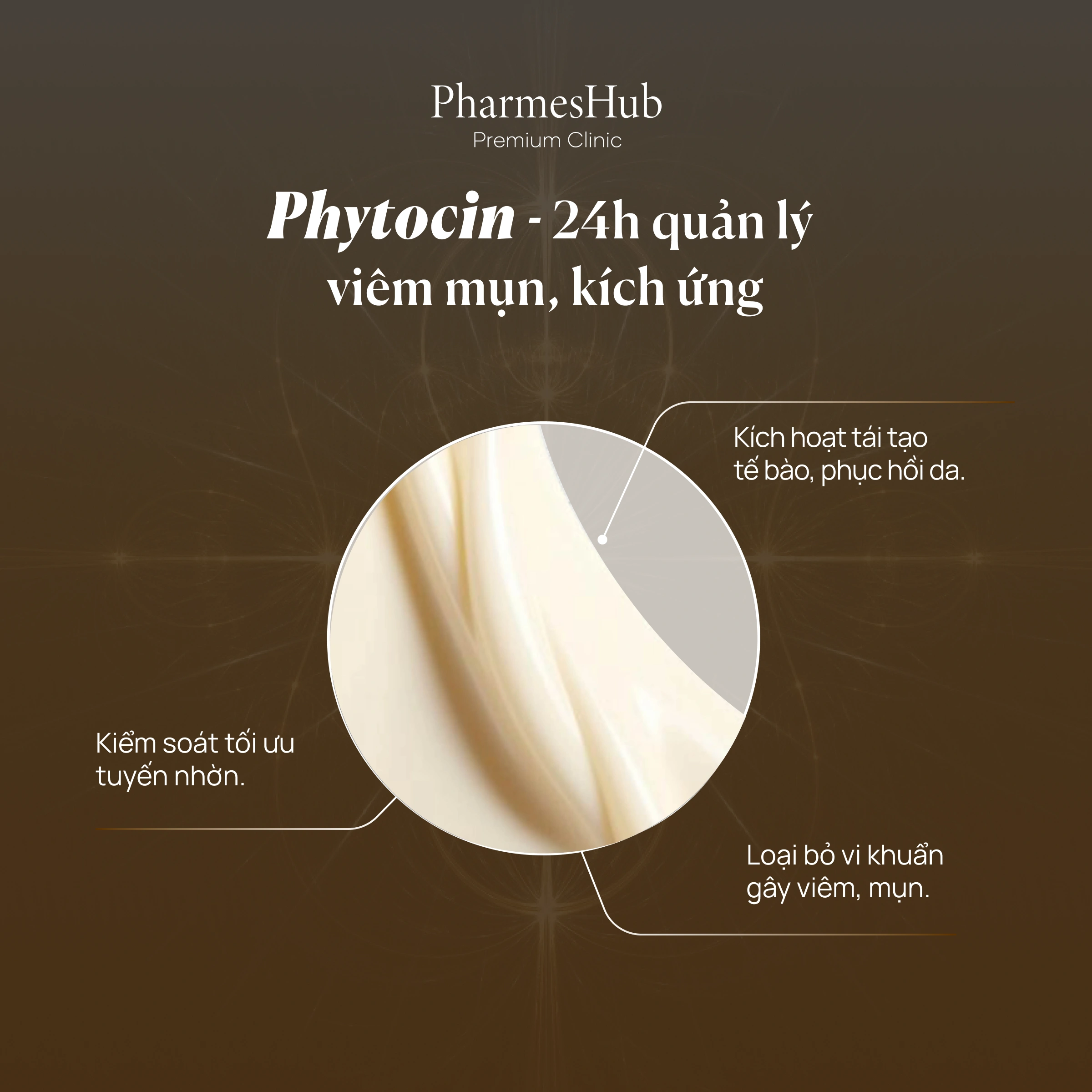 – Ức chế nhiễm khuẩn thứ cấp, kiểm soát nhờn mụn Tái tạo, phục hồi tổn thương suốt 24H