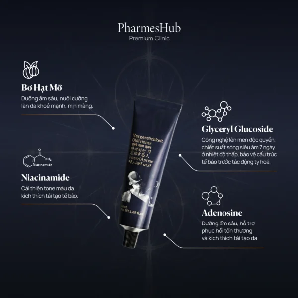 – Chứa Hyaluronic Acid và bơ hạt mỡ giúp dưỡng ẩm, làm mềm và phục hồi da khô.